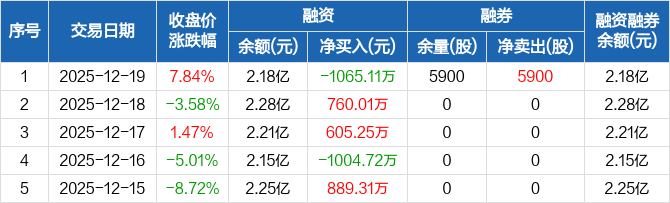 哈焊华通:融资净偿还1065.11万元,融资余额2.18亿元(12-19)