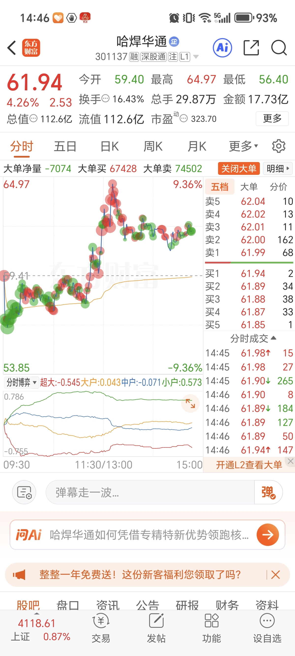 $哈焊华通(SZ301137)$ 今天真就是小散用小单抬起来的,不然砸出个深坑,还得是家人们,人多力量大