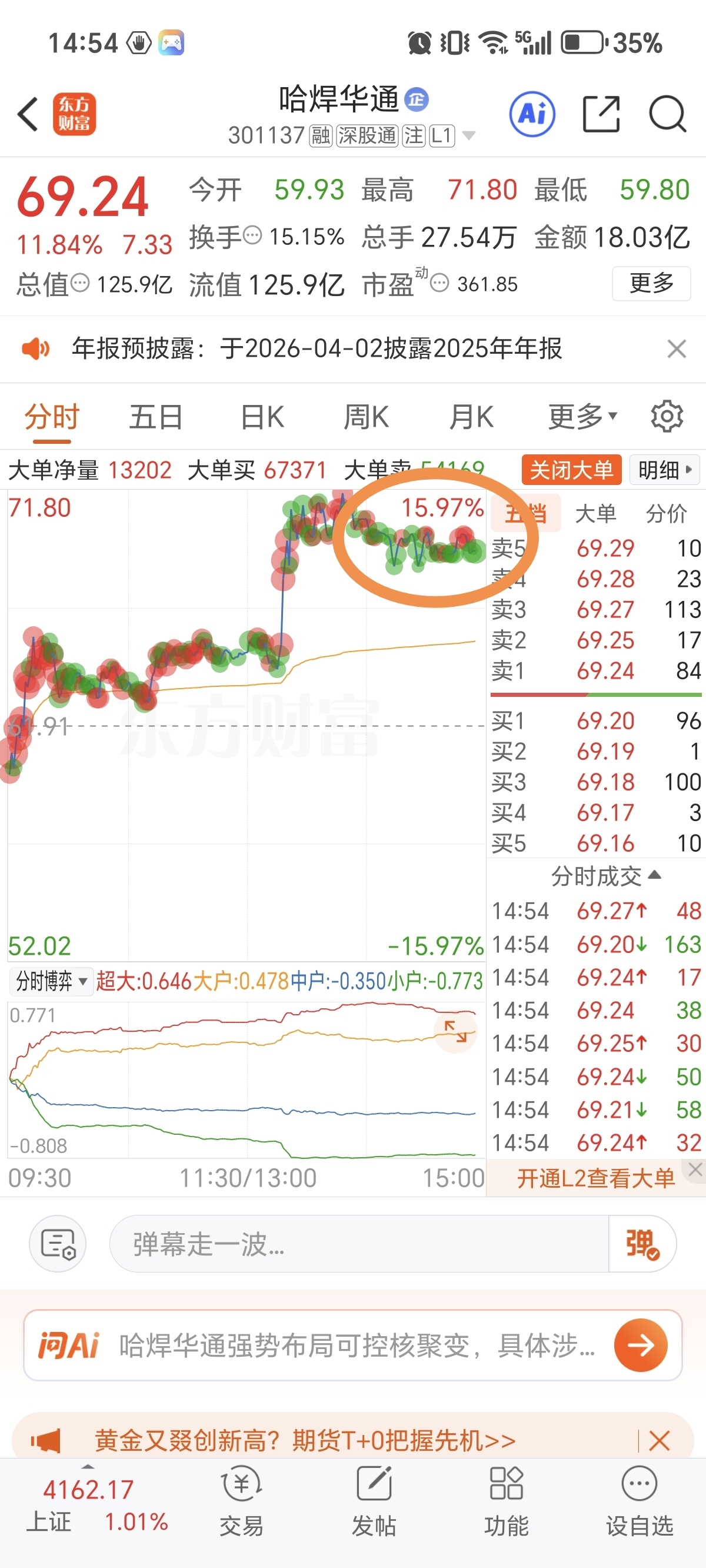 $哈焊华通(SZ301137)$ 没涨停大单就框框卖,破前高就拿着呗,尾盘出清又抢哪个股去了?