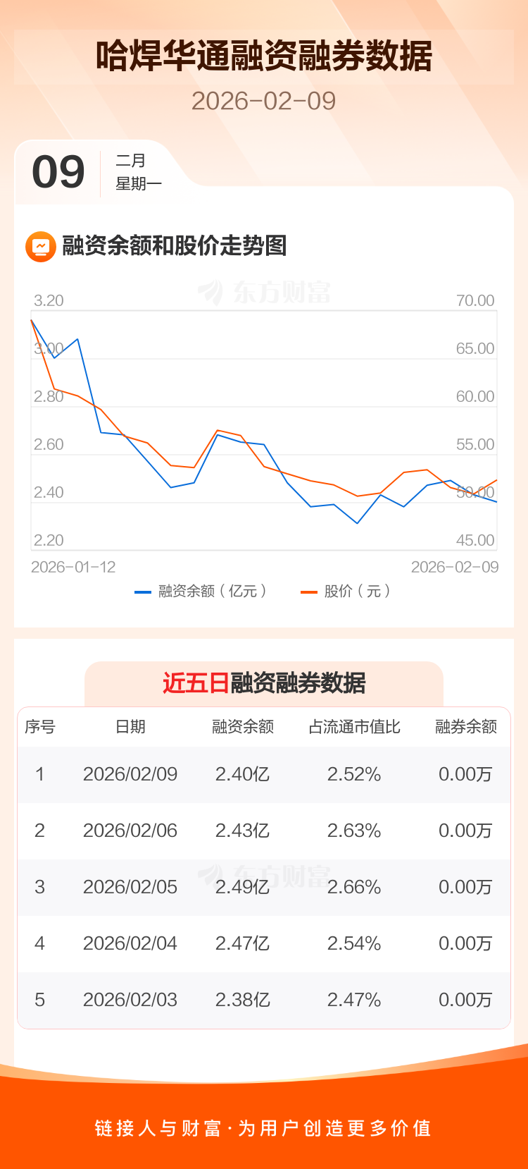 交易所最新数据显示,哈焊华通于2026年2月9日获融资买入2660.17万元,融资偿还3028.83万元,当日融资净偿还368.66万元。目前,该股融资余额2.40亿,占流通市值比例为2.52%。