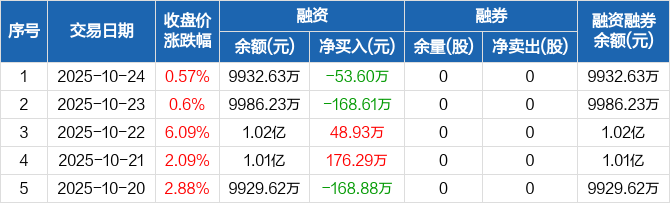 华研精机:融资净偿还53.6万元,融资余额9932.63万元(10-24)