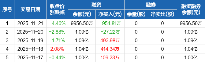 华研精机:融资净偿还954.81万元,融资余额9956.5万元(11-21)