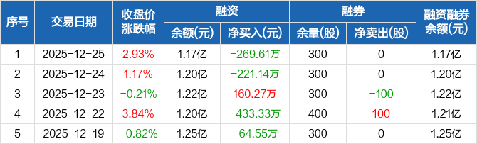 华研精机:融资净偿还269.61万元,融资余额1.17亿元(12-25)