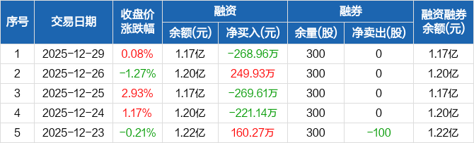 华研精机:融资净偿还268.96万元,融资余额1.17亿元(12-29)