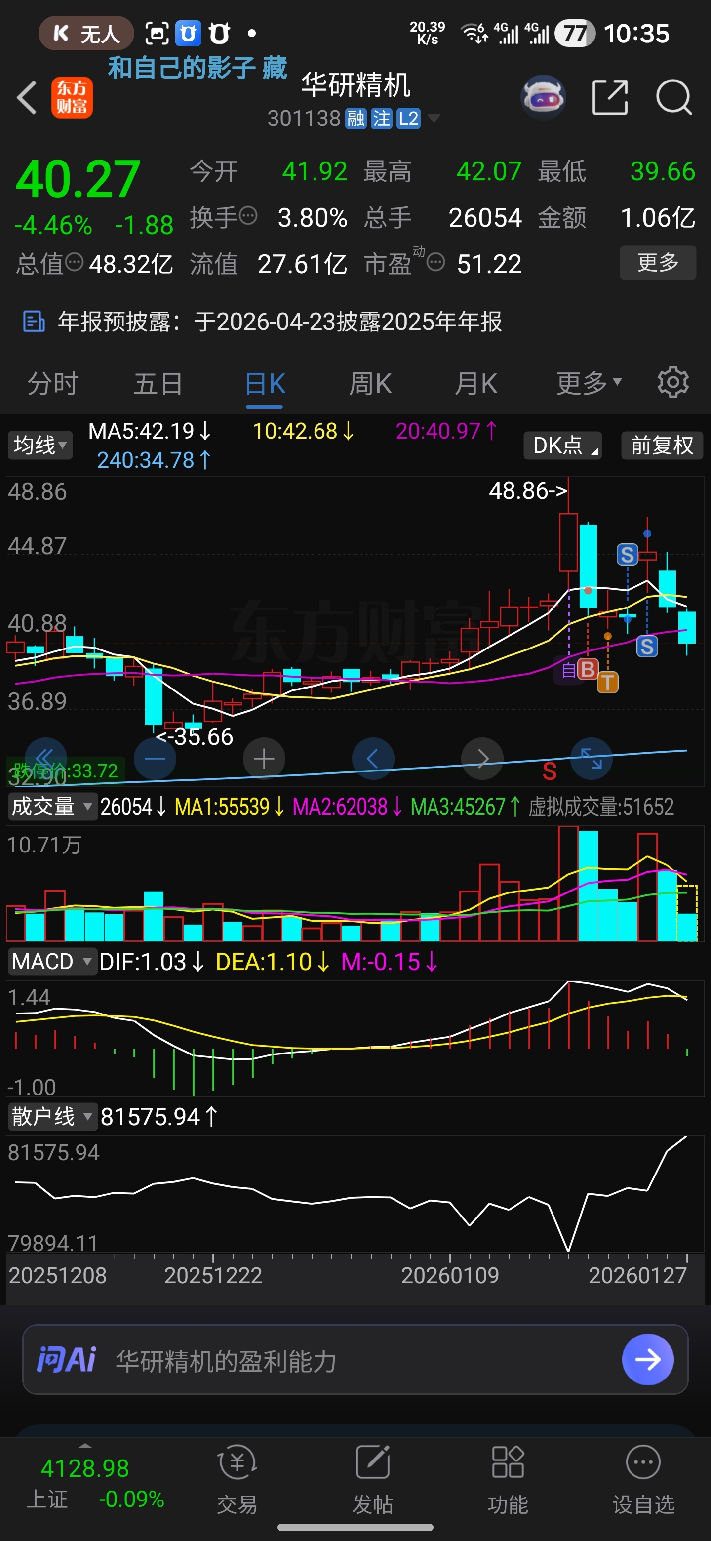 $华研精机(SZ301138)$ 卖出后下跌了12个点,真厉害