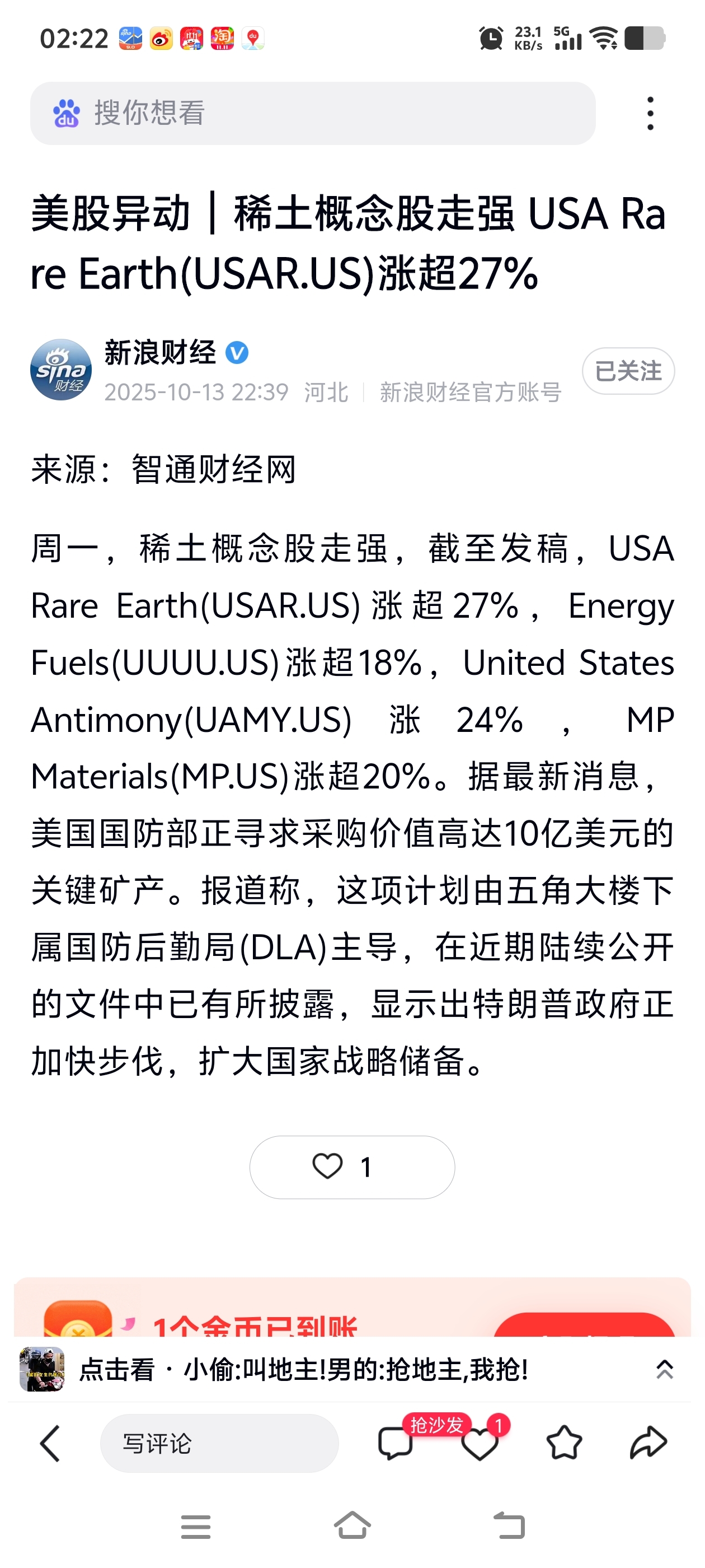 美股异动|稀土概念股走强 USA Rare Earth(USAR.US)涨超27%