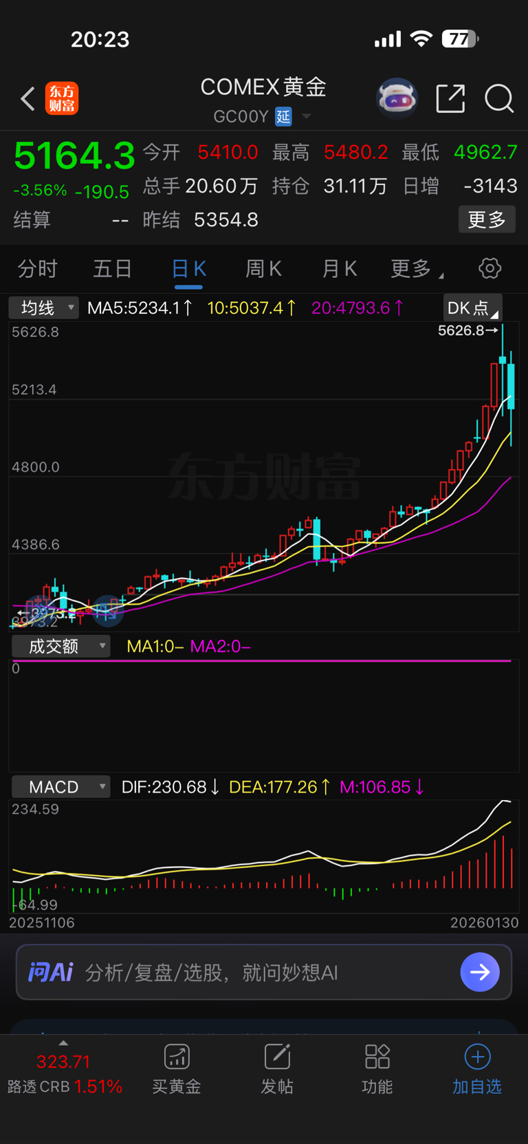 买了这个破股,我竟然关系起黄金走势了。