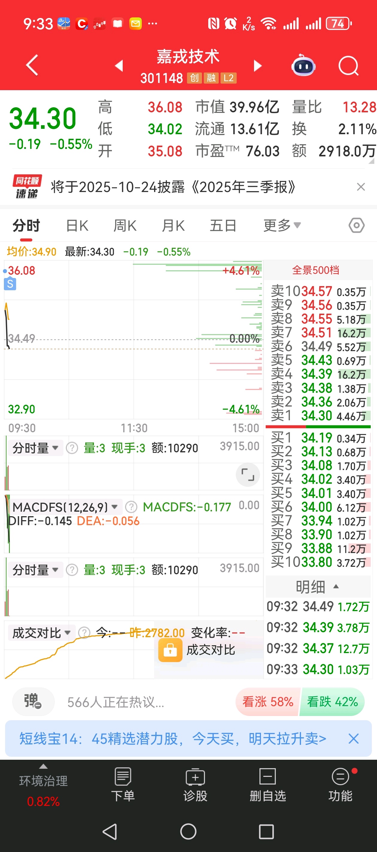$嘉戎技术(SZ301148)$ 36走了,你们发财……