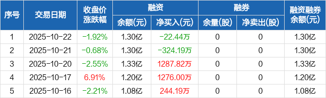 嘉戎技术:融资净偿还22.44万元,融资余额1.3亿元(10-22)