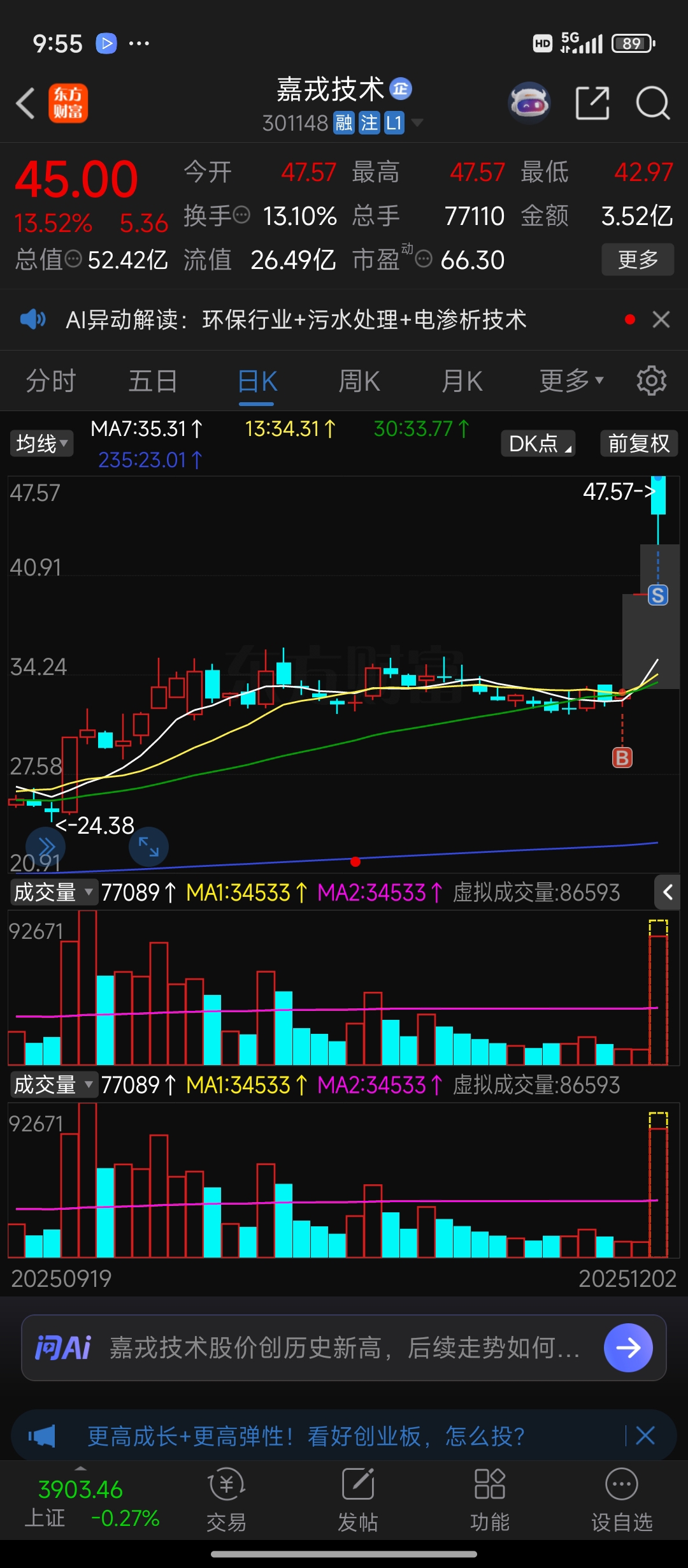 $嘉戎技术(SZ301148)$ 哎,卖飞了,就拿了两个板