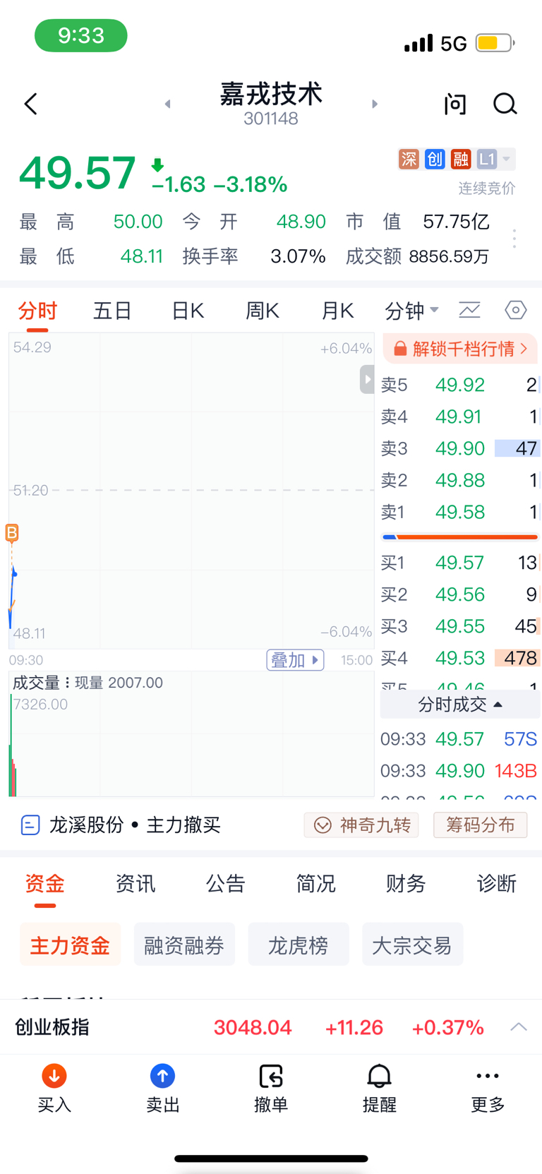 $嘉戎技术(SZ301148)$ 48.66全仓