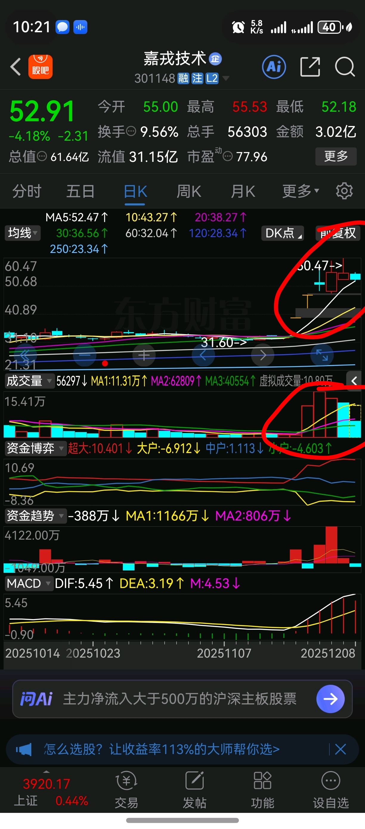 $嘉戎技术(SZ301148)$ 感觉可以抄底了,半仓就行,安全第一