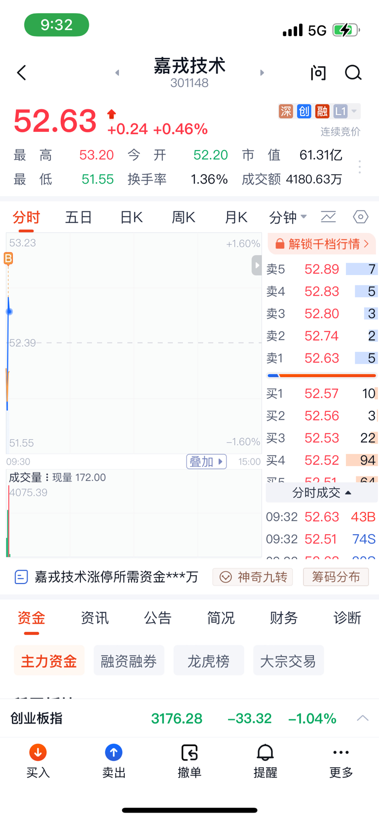 $嘉戎技术(SZ301148)$ 5266半仓,那边13.6出了半仓