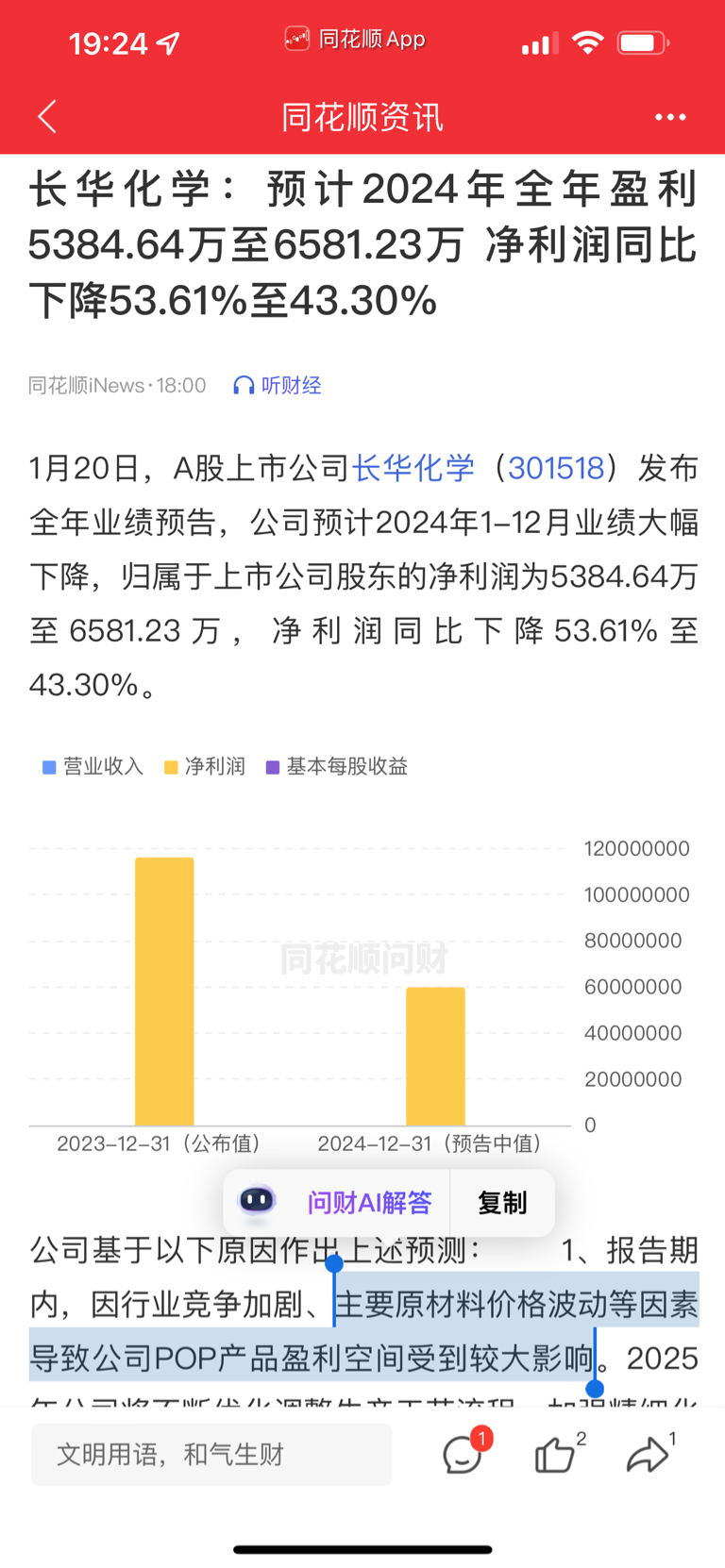 $隆华新材(SZ301149)$ 长华净利润下降百分之53