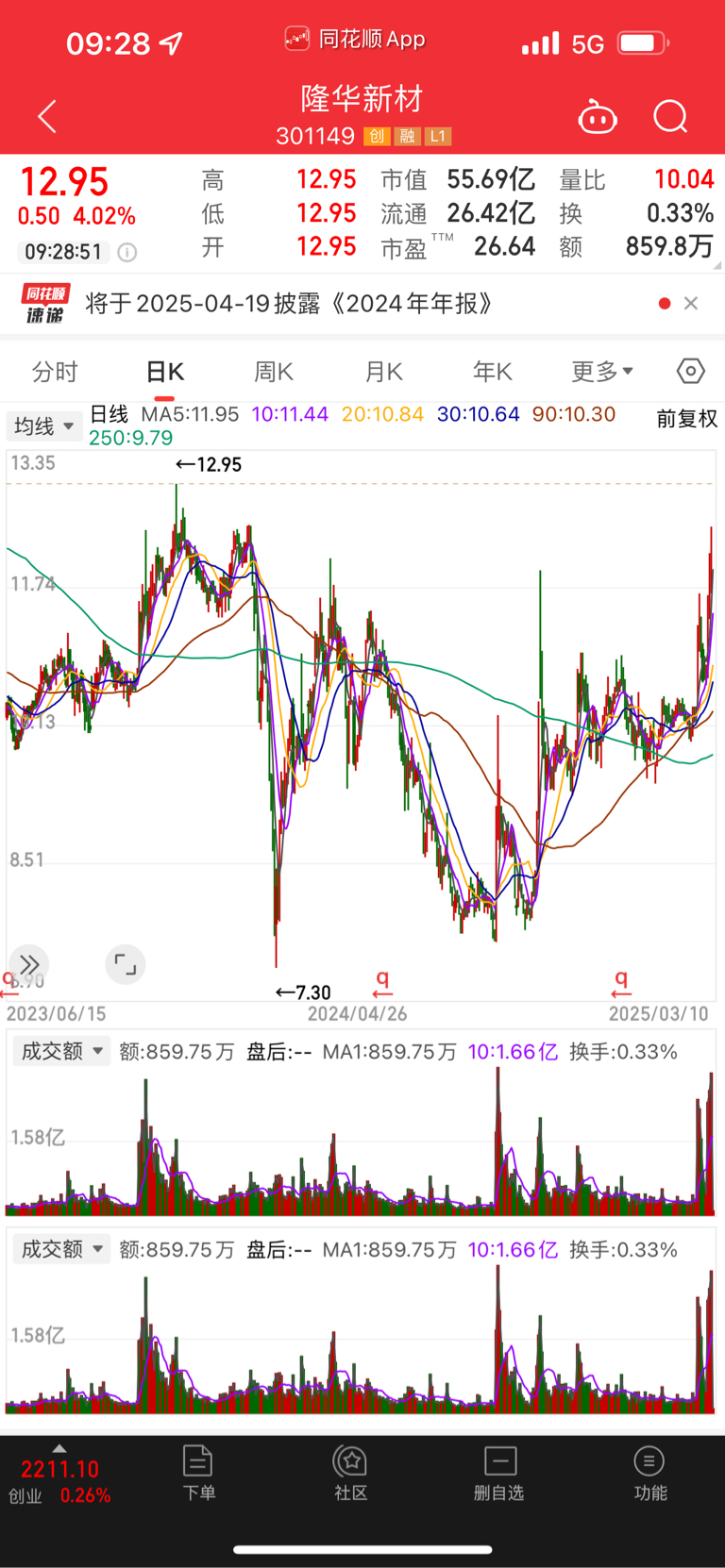 $隆华新材(SZ301149)$ 开在前高!!!!?!