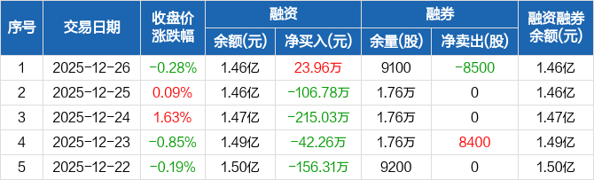 隆华新材:融资净买入23.96万元,融资余额1.46亿元(12-26)