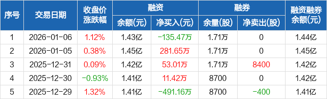 隆华新材:融资净偿还135.47万元,融资余额1.43亿元(01-06)