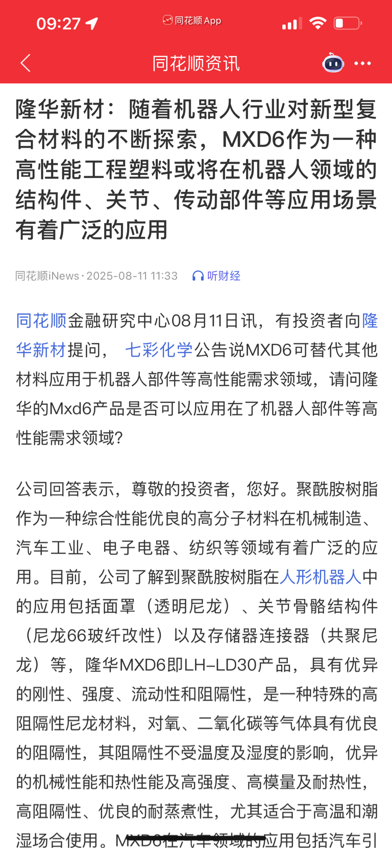人形机器人材料MXD6和商业航天宇航服降落伞材料特种pa66