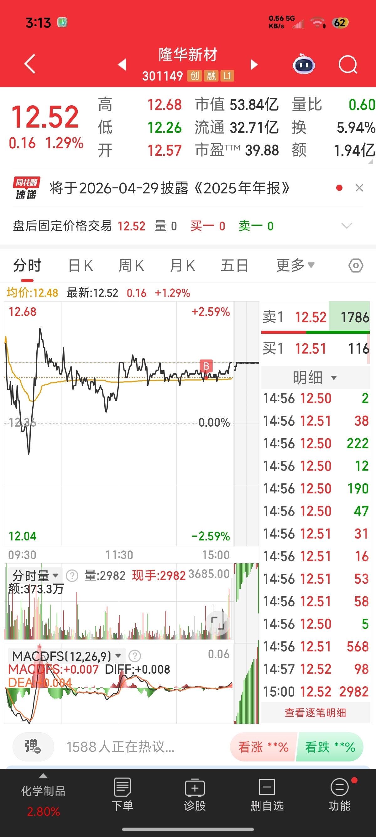$隆华新材(SZ301149)$ 尾盘进了点隆华新材!