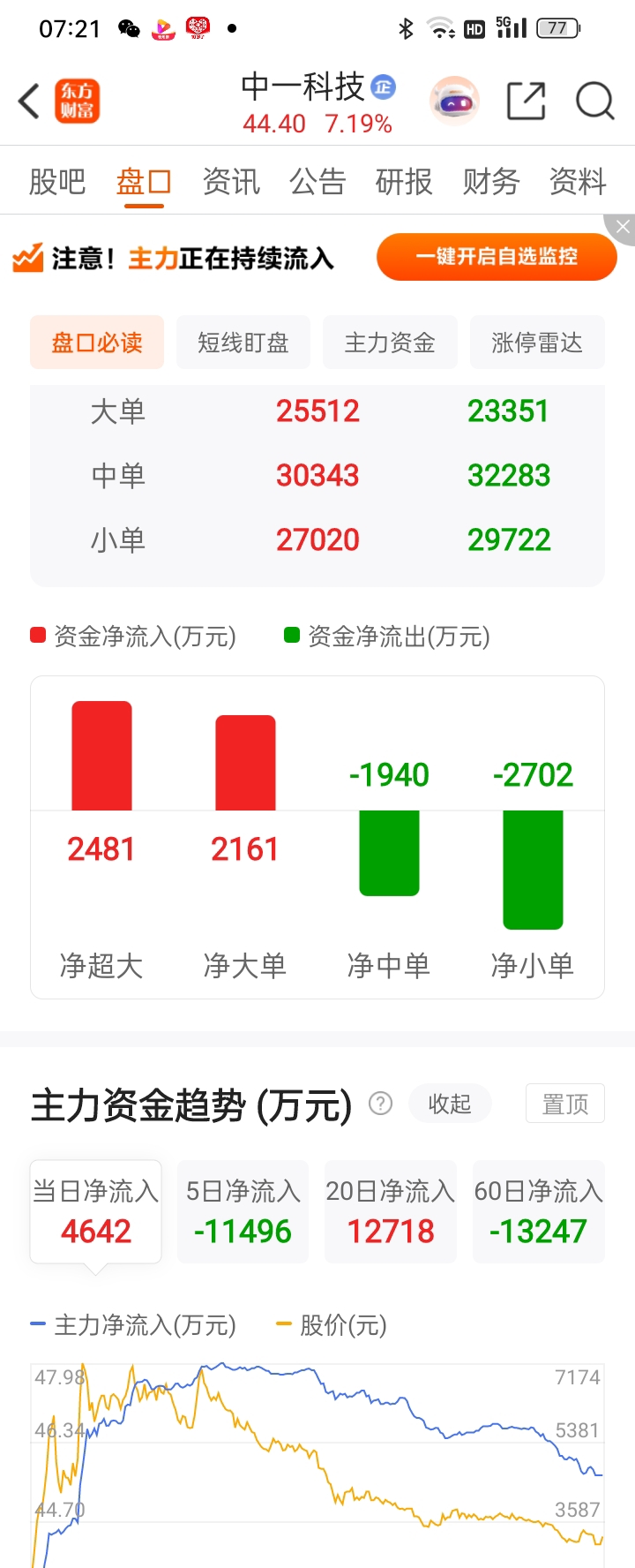 $中一科技(SZ301150)$ 昨天主力资金净买入的努力,今天上午还会不会有表现?!