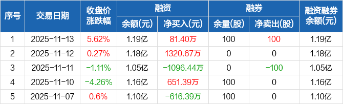 中一科技:融资净买入81.4万元,融资余额1.19亿元(11-13)