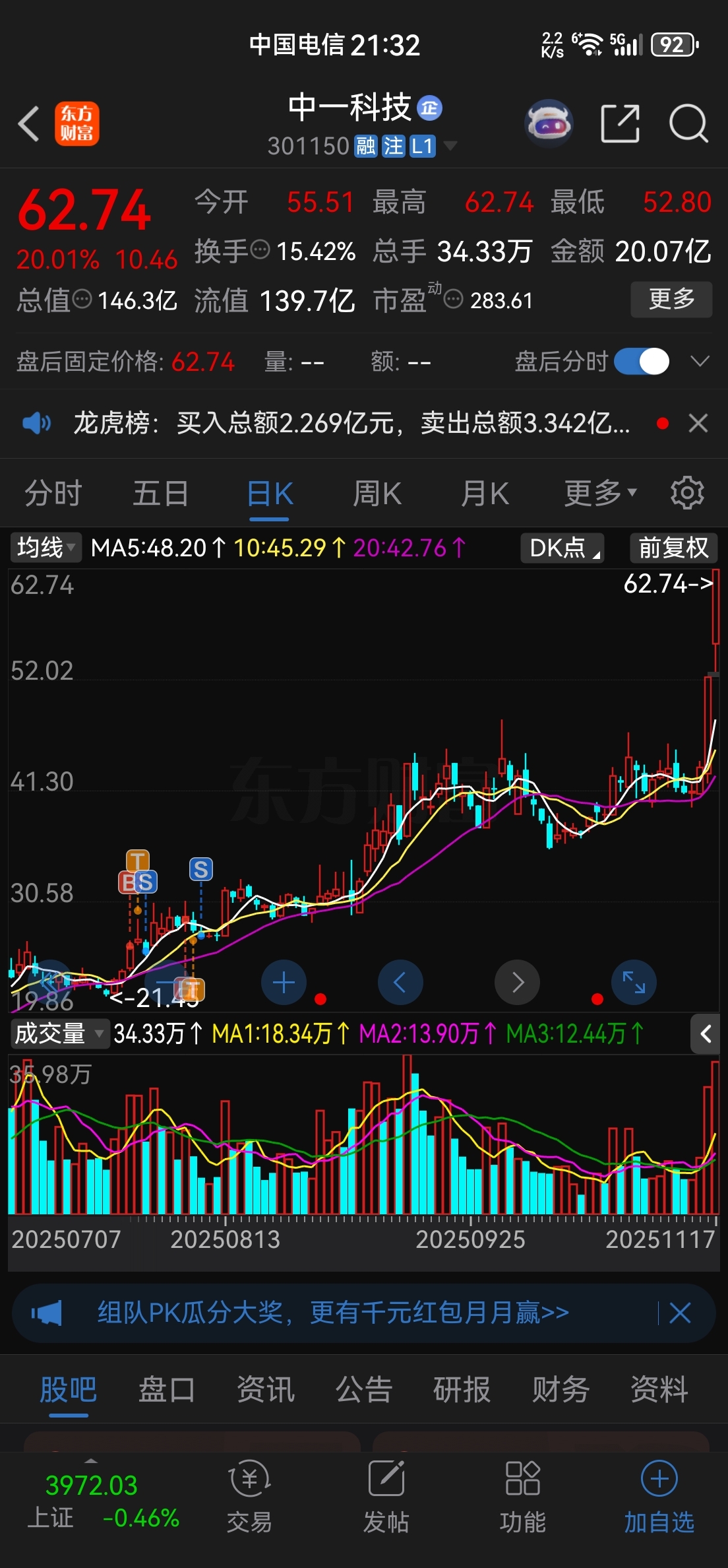 $中一科技(SZ301150)$ 我在这里走的,居然涨这么高了