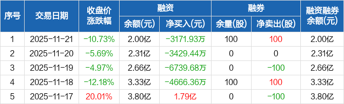 中一科技:连续4日融资净偿还累计1.8亿元(11-21)