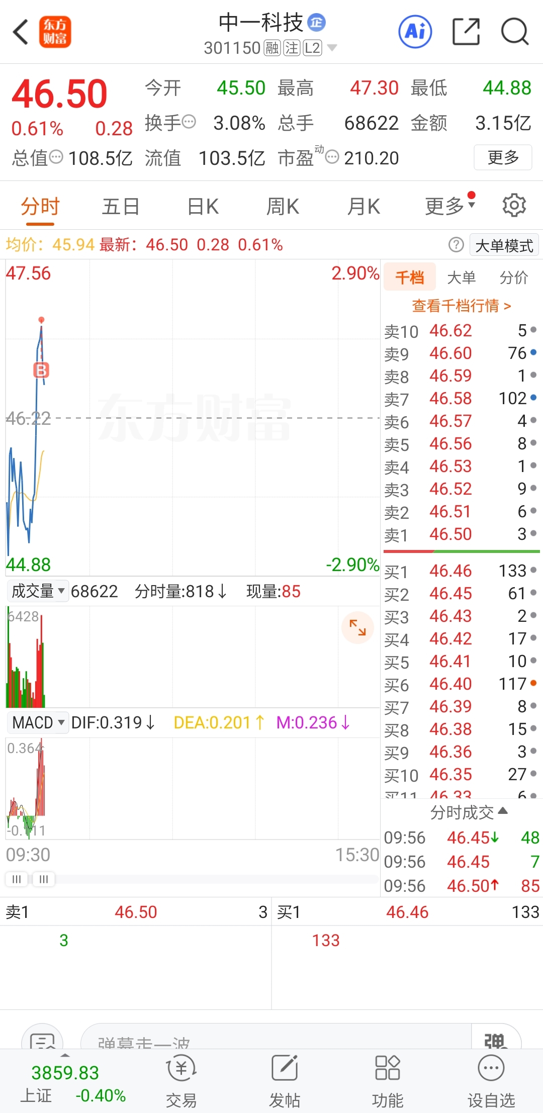 $中一科技(SZ301150)$ 我真的是买什么什么,最高点
