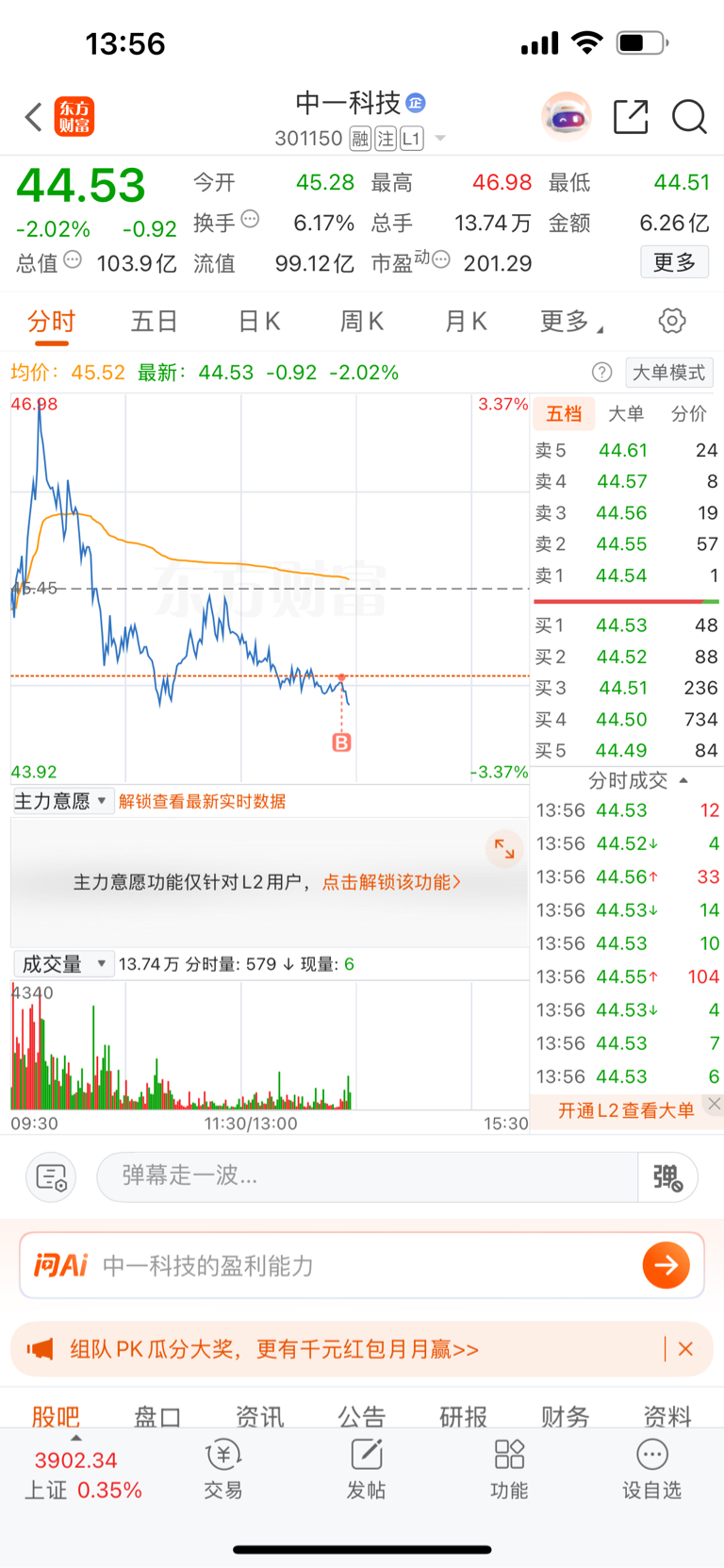 $中一科技(SZ301150)$ 不是吧我一买就跌