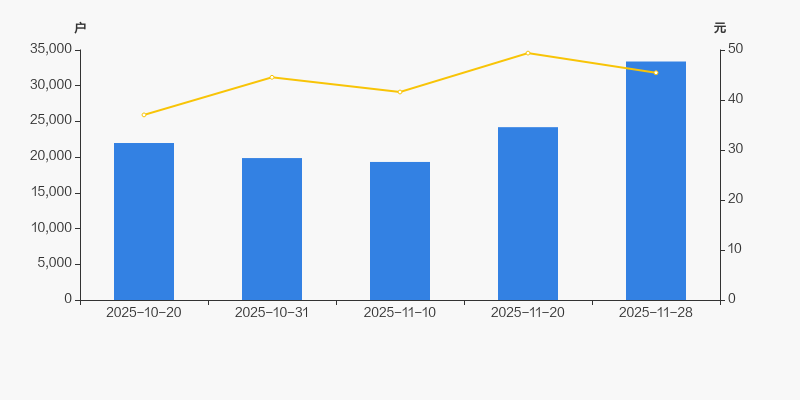 2025年10月20日至今,公司股东户数显著大幅增长,区间涨幅达51.92%。2025年10月20日至2025年11月28日区间股价上涨22.77%。