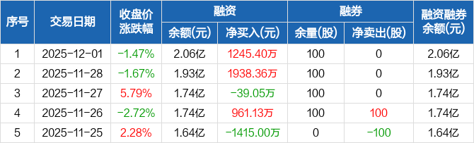 中一科技:融资净买入1245.4万元,融资余额2.06亿元(12-01)