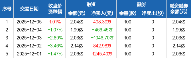中一科技:融资净买入498.39万元,融资余额2.04亿元(12-05)