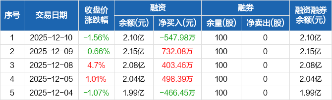 中一科技:融资净偿还547.98万元,融资余额2.1亿元(12-10)