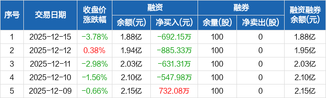 中一科技:连续4日融资净偿还累计2756.77万元(12-15)