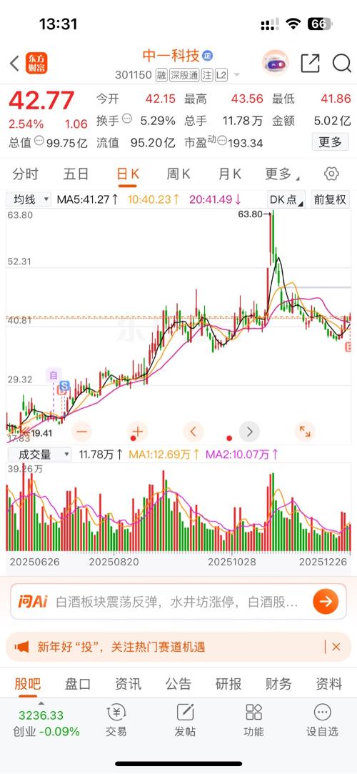 $中一科技(SZ301150)$  上涨无力,随时跳水的态势,很无语