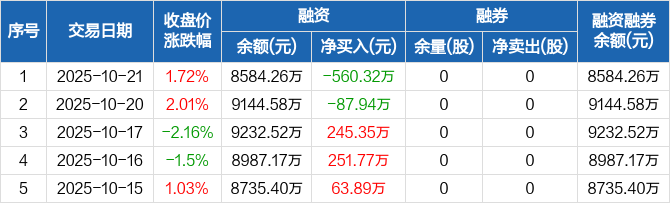 冠龙节能:融资净偿还560.32万元,融资余额8584.26万元(10-21)