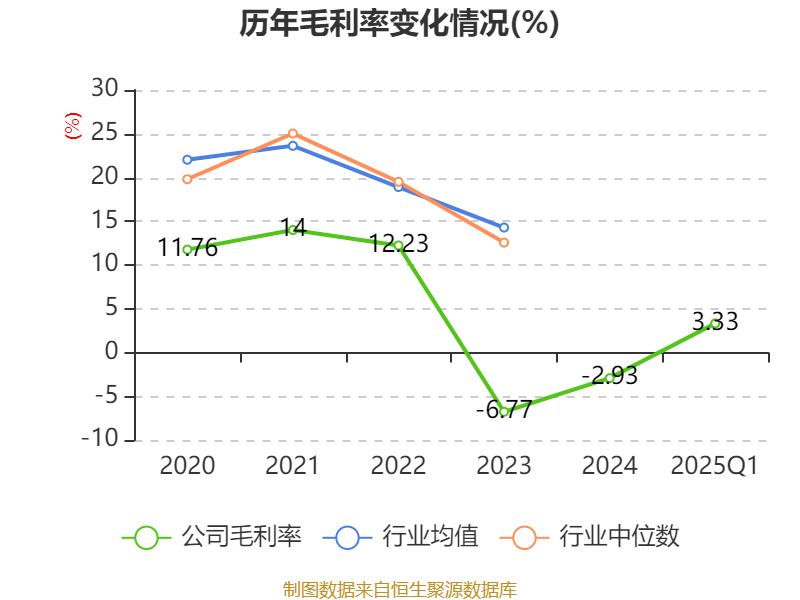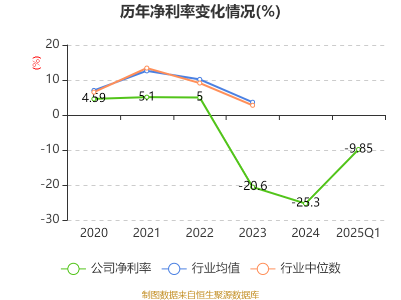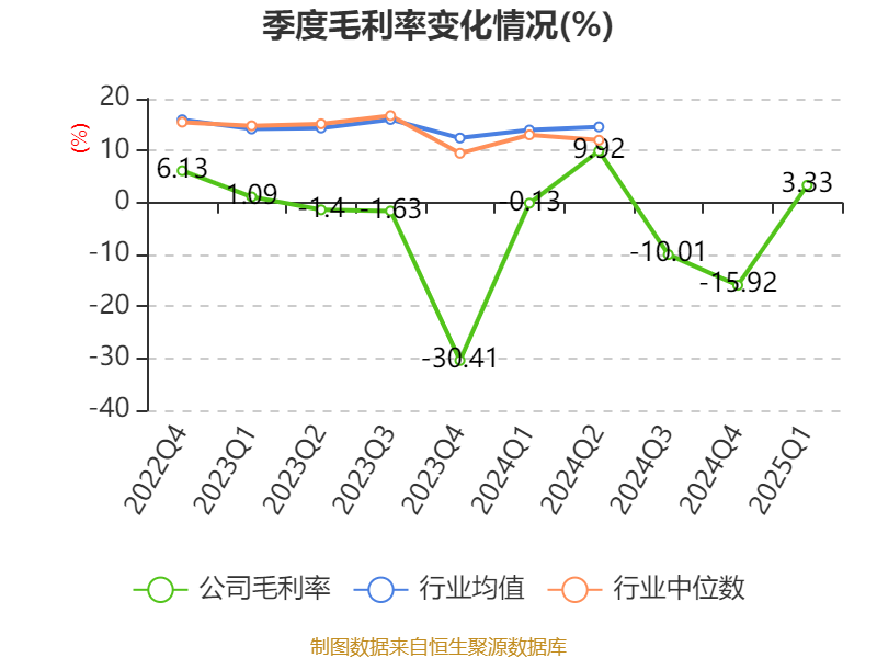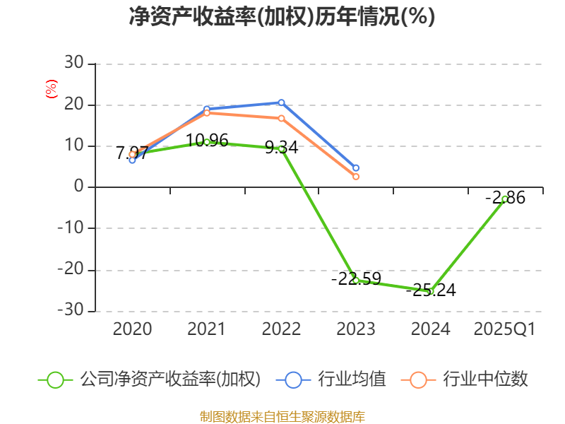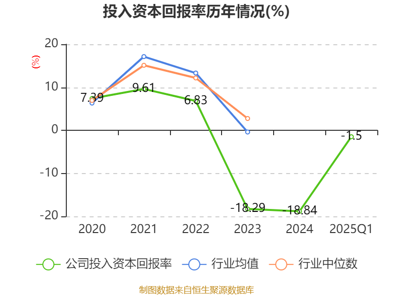 盈利能力方面, 2025年一季度公司加权平均净资产收益率为-2.86%,同比下降0.44个百分点。公司2025年第一季度投入资本回报率为-1.5%,较上年同期上升0.19个百分点。