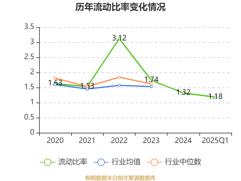 2025年第一季度,公司流动比率为1.18,速动比率为0.97。