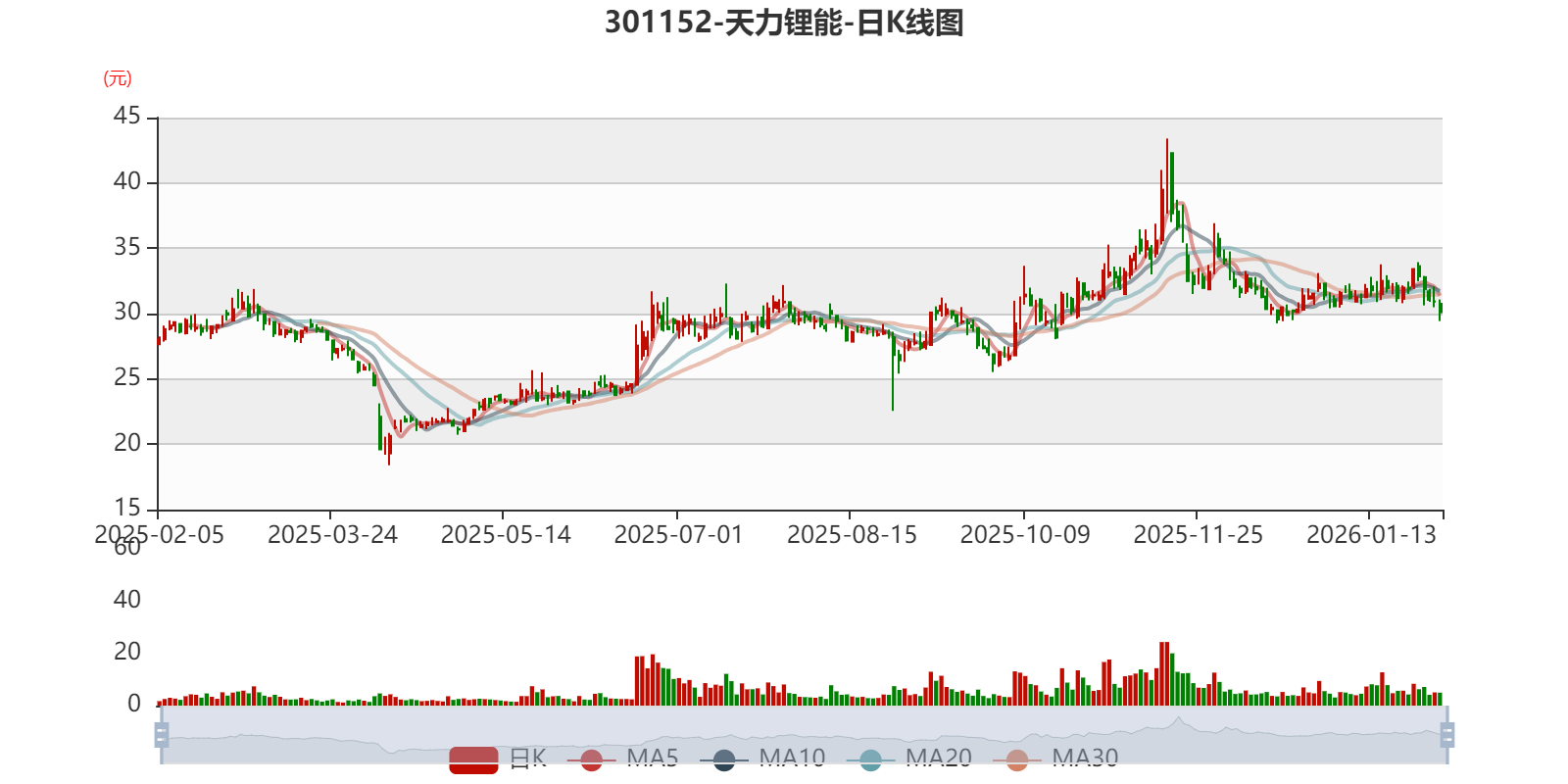 中证智能财讯天力锂能(301152)1月30日晚间披露2025年度业绩预告,预计2025年归母净利润亏损1.5亿元至2亿元,上年同期亏损4.29亿元;扣非净利润亏损1.54亿元至2.04亿元,上年同期亏损4.28亿元。以最新收盘价计算,市净率(LF)约2.65倍,市销率(TTM)约1.87倍。