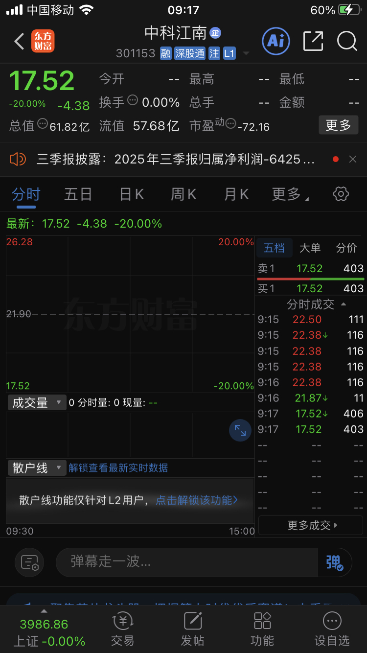 $中科江南(SZ301153)$ 跌停是谁打的?