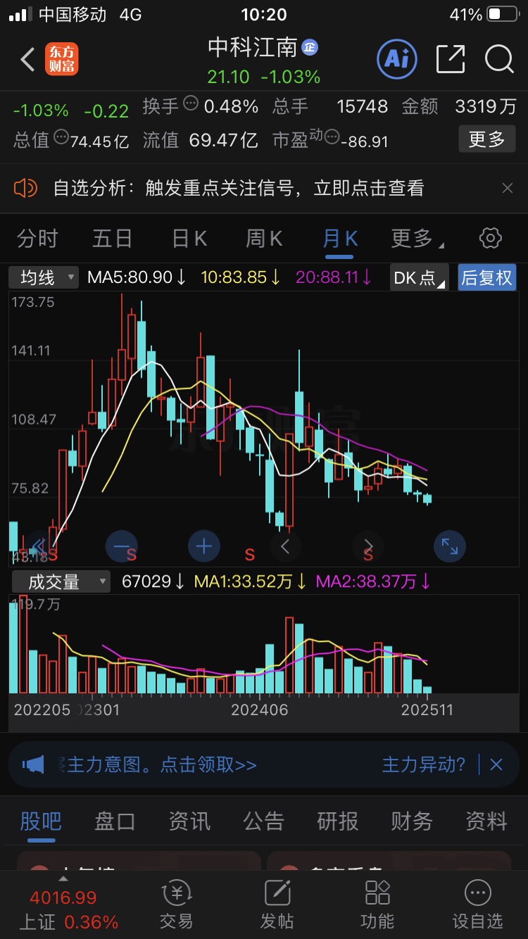 $中科江南(SZ301153)$ 空头趋势,没有任何反转行情谨慎点吧!补仓的20以下再说!