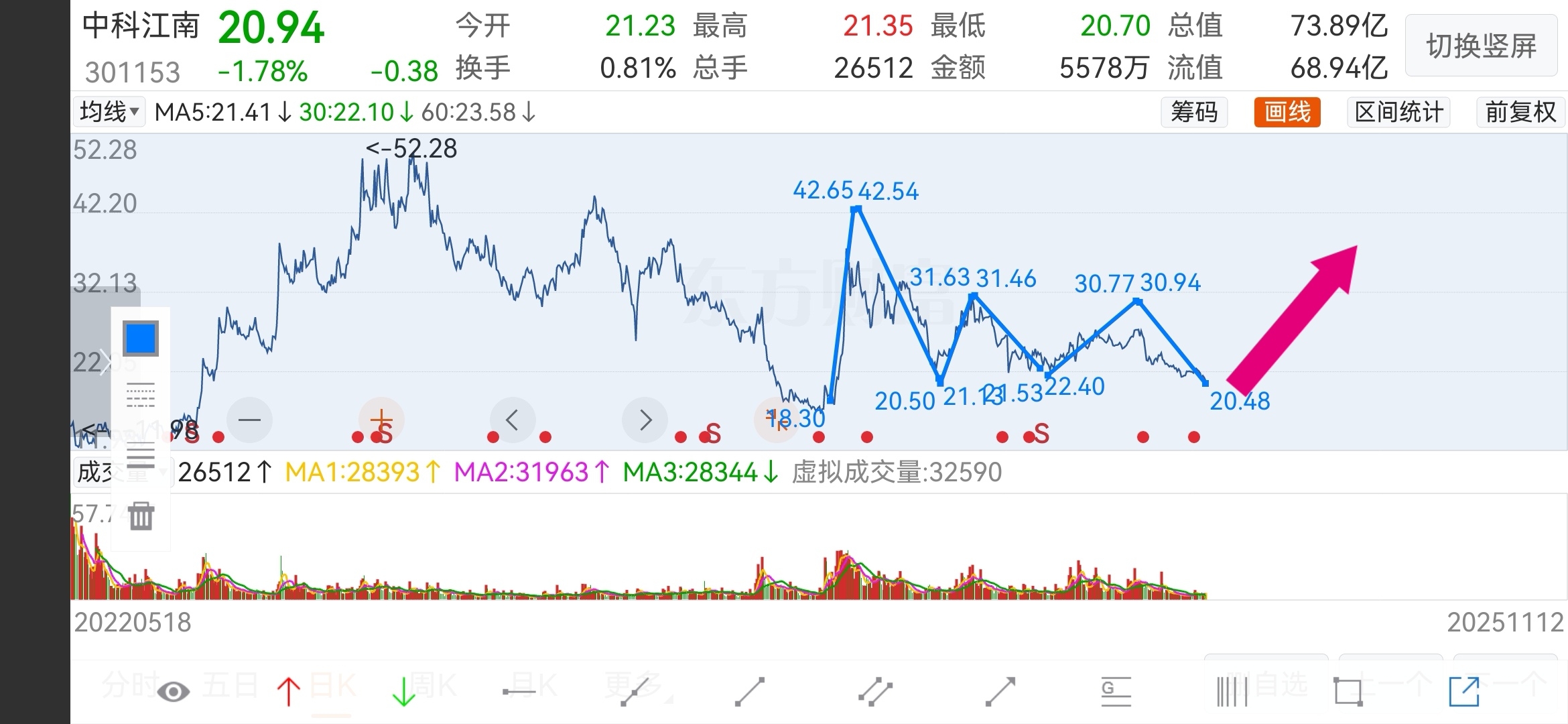 $中科江南(SZ301153)$ 中科江南股价假想图