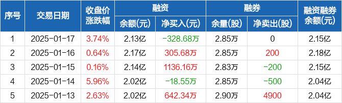 海力风电:融资净偿还328.68万元,融资余额2.13亿元(01-17)