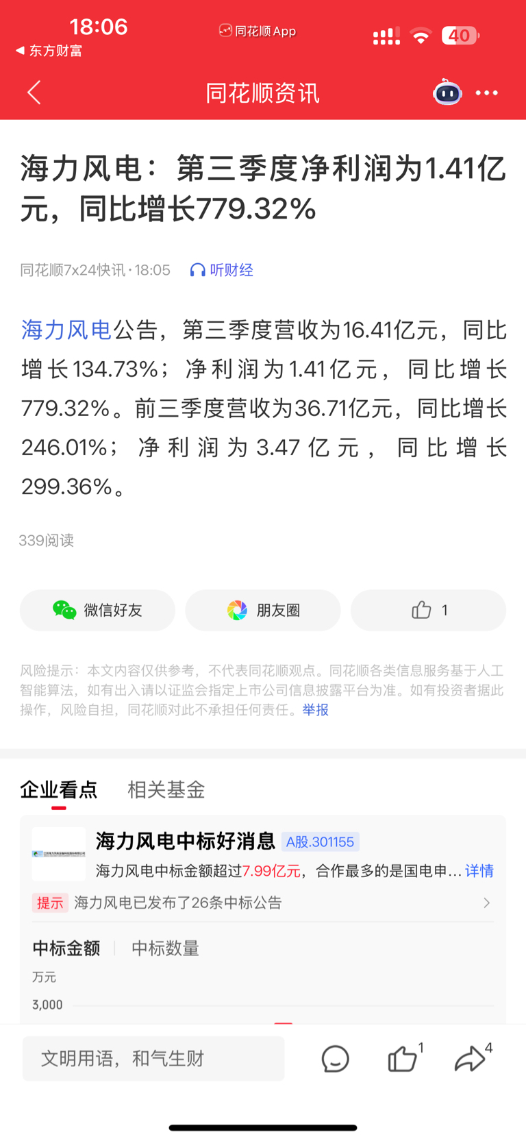 $海力风电(SZ301155)$ 业绩来了,今天强洗盘