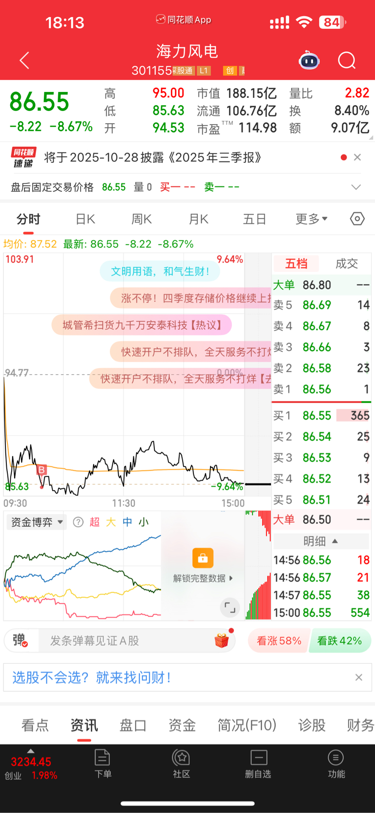 $海力风电(SZ301155)$ 今天买少了 我了个擦