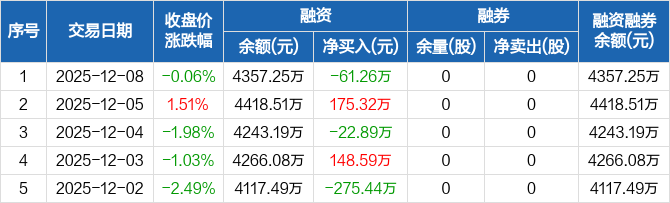 美农生物:融资净偿还61.26万元,融资余额4357.25万元(12-08)