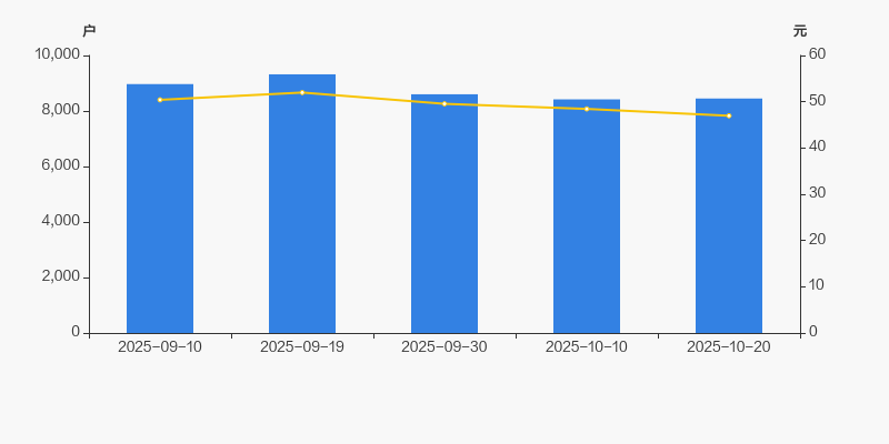 2025年9月10日至今,公司股东户数有所下降,区间跌幅为5.80%。2025年9月10日至2025年10月20日区间股价下降6.82%。
