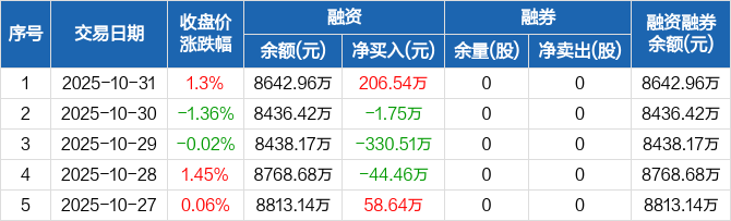 华塑科技:融资净买入206.54万元,融资余额8642.96万元(10-31)