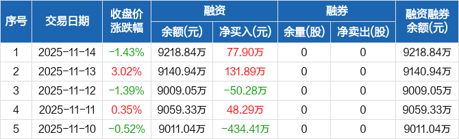华塑科技:融资净买入77.9万元,融资余额9218.84万元(11-14)