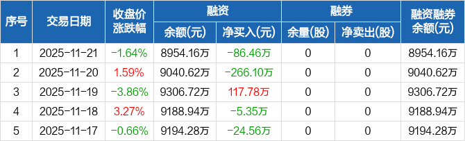 华塑科技:融资净偿还86.46万元,融资余额8954.16万元(11-21)